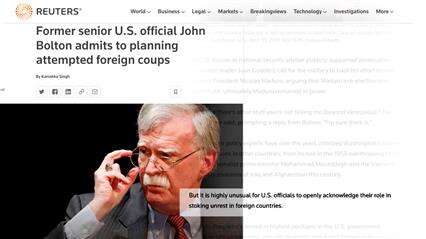 路透社称“美国政府的高级官员公开承认策划别国政变‘极不寻常’”。