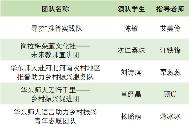 “雪域高原铸师魂——华东师范大学赴西藏日喀则白朗县推普脱贫攻坚志愿者服务团”,获教育部语用司2018年“推普脱贫攻坚”全国大学生暑期社会实践专项活动获得全国优秀团队;