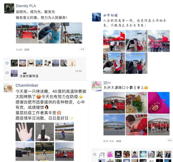 青年志愿者们发布的朋友圈。团合肥市委提供