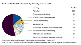 而美国政府问责局2018年发布的一份报告披露,2003年至2016年,美国有452名儿童因工伤死亡,其中超过230人死于从事农业相关活动。