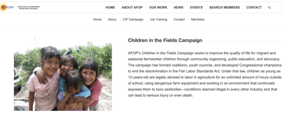在《田地里的儿童—你应该知道的故事》的小册子中,该组织指出,在美国,很少有人去纠正农场的童工问题。这是因为,隐瞒童工现象符合很多人的利益。这符合雇主的利益,因为它压低了农场工人的工资;这符合消费者的利益,因为它降低了食品杂货的成本;这符合父母的利益,因为“人多力量大”。当儿童被笼罩在劳作的阴影下,他们不得不承担着低工资、低成本和高支出的沉重负担。