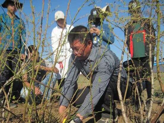 吉林农业大学田间实习,老师正在进行蓝莓修剪。