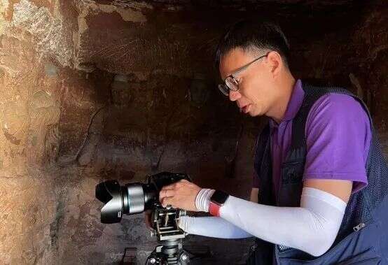 实践队师生采集了云崖寺1号、2号、3号、4号石窟,竹林寺1号、4号石窟和三教洞的数据,年代上至北魏,下至明代,跨度千余年。其中,竹林寺1号窟位于峭壁上,需要攀爬云梯、用吊索运输设备,才能开展作业。冯欢与团队成员刘其远在面积不足三平方米的空间内连续工作,对三尊宋代造像进行全方位扫描及拍摄,直至扫描完毕才下窟。