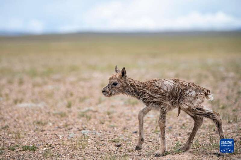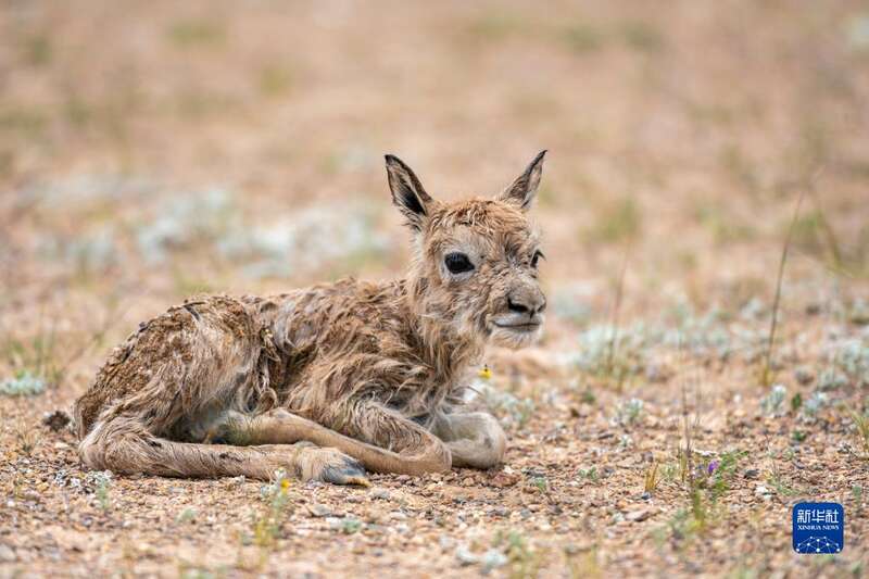 这是一只刚出生的藏羚羊幼崽(7月11日摄)。