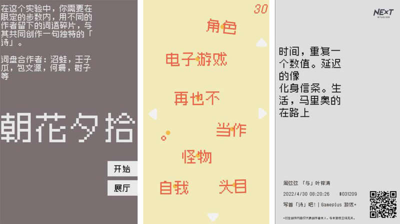 当然,这种游戏设计形式下的诗歌表现与创作本身是否称得上“成功”,从本人目前所进行过的访谈与结果反馈来看,还是值得商榷的。然而总的来说,这款游戏确实让我们看到了数字游戏所能诞生出另一种新的文学可能:数字游戏不仅可以作为文学的载体,也可以成为文学发生的场域。这里所说的“发生”并非指文学的起源,而是降级的“出现”,所谓“文学发生场域”,即指创作、阅读等文学行为、文学活动可以于此出现。