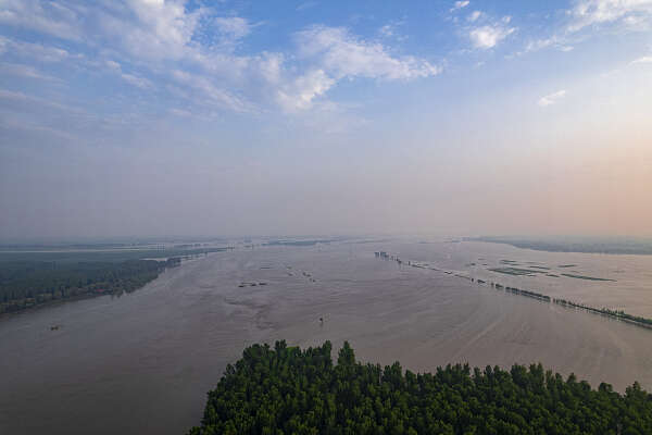 2022年7月8日,受连日来降雨影响辽中区辽河水位上涨,河道两侧的洪水已没过树干。视觉中国供图