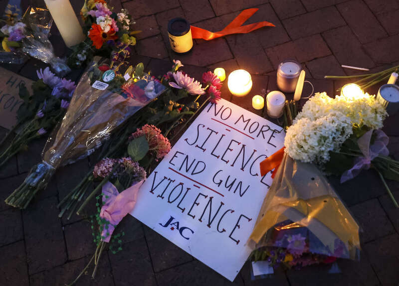 7月5日,在美国伊利诺伊州海兰帕克市,悼念者摆放写着“不再沉默,停止枪支暴力”的标语牌。5日,人们在伊利诺伊州海兰帕克市悼念“独立日”枪击案遇难者。新华社发(乔尔·莱纳摄)