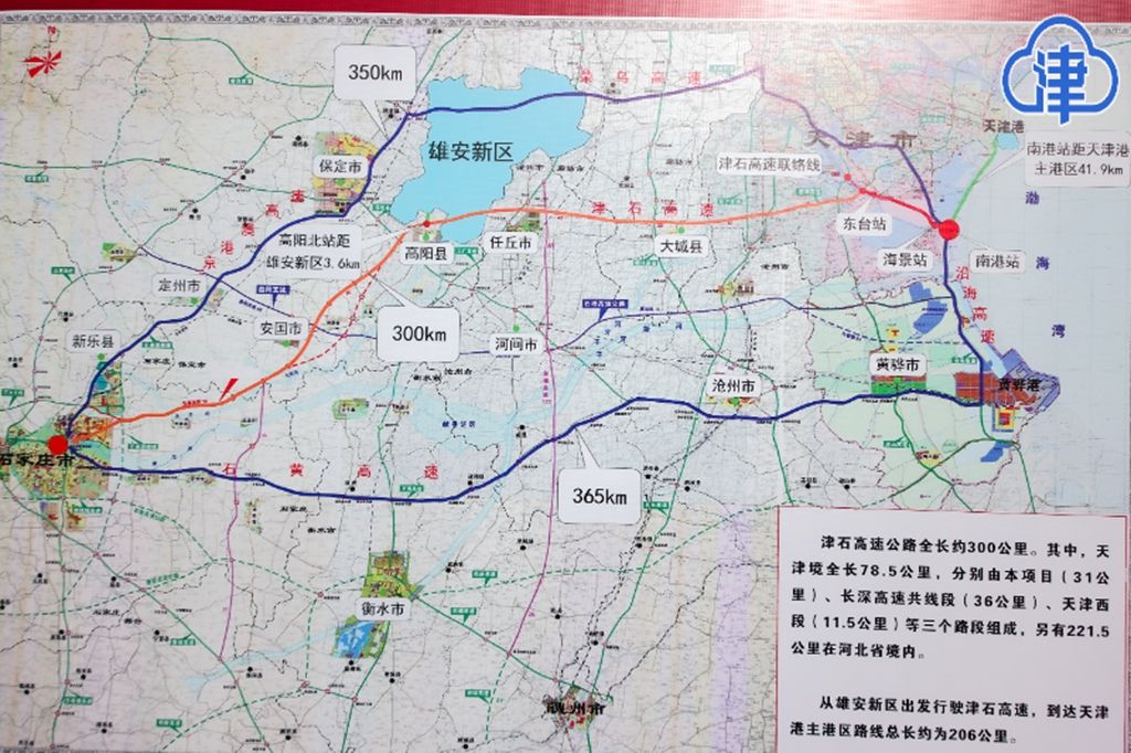 今年1月,位于滨海新区的津石高速天津东段主线实现通车,标志着从天津港南部港区经雄安新区到石家庄的津石高速主线全线贯通。天津高速路网正式形成“8横6纵”的整体布局,省市路网密度位居全国第二,平均每16公里就有一个高速路口通往北京市和河北省,实现三地无缝衔接。