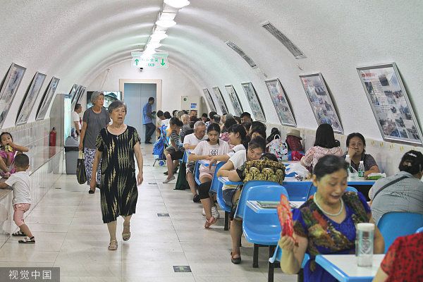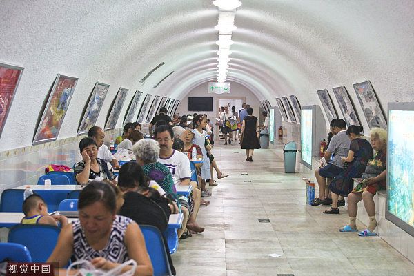 2017年7月27日,成都,市民在成都人民公园防空洞纳凉、休闲。