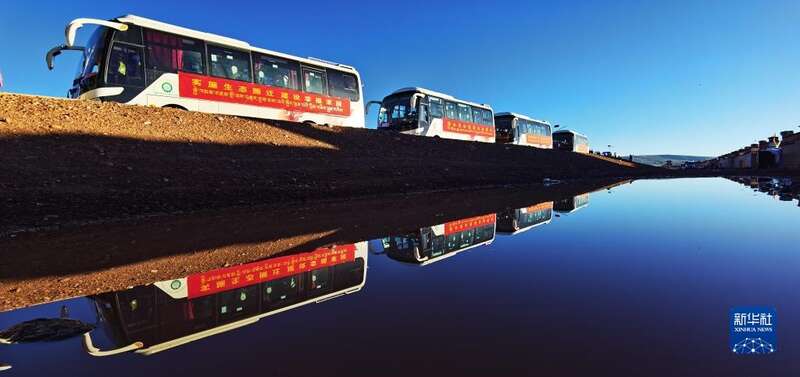 7月19日,西藏自治区开始实施全国海拔最高县双湖县第二批高海拔牧民生态搬迁。客车载着牧民驶离西藏那曲市双湖县多玛乡,前往位于山南市贡嘎县的森布日安置点。