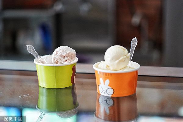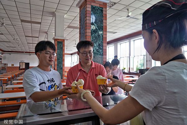 2022年7月20日,哈尔滨,学生兼职进行“大豆冰淇淋”的制作售卖。东北农业大学学生团队研制的大豆冰淇淋,以健康的大豆原料和便宜的价格,在夏季受到同学的热捧,即使是暑假期间,也常受到留校学生的光顾。