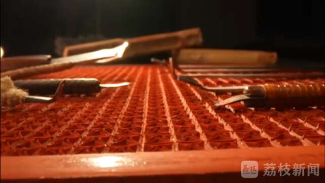 张飞洋想起昔日课堂上习得的散点透视、平行透视乃至一点透视法,将其巧妙化用至刀尖,提升雕刻层次,另一面为自己“加餐”——夜里十一、二点仍埋首工位灯下练习刀法,“下刀统一45度角,刻了成千上万刀”,总算勉强摸着点门道,拟得几分画稿形态。