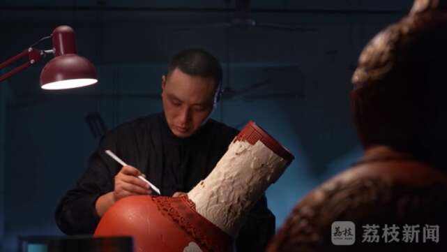 但雕漆讲究“形神兼备”,勤奋雕刻几年后,张飞洋发现自己的作品始终走不出“有形无神”的怪圈。他跟自己较劲,通宵达旦地干,但手中的刻刀怎么也表达不出想要的神韵。这时师父张来喜适时点醒了他:不妨放一放再看。