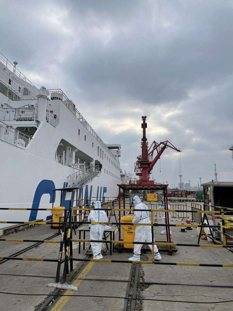 吴淞海关对“新鉴真”号轮进行监管。(黄涛 摄)