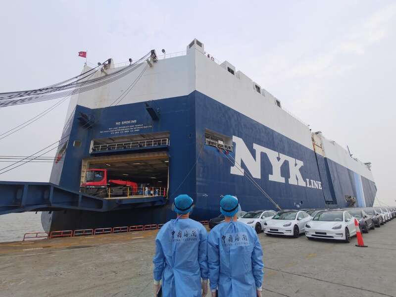 7月15日,外港海关监管国产新能源车装船。(朱雯 摄)