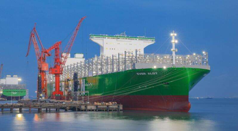 我国首艘全球最大2.4万标准箱(TEU)超大型集装箱船在上海交付。