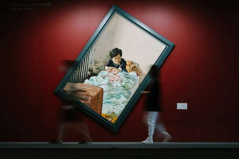 观众在欣赏张大千《谷口人家》