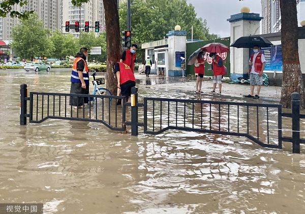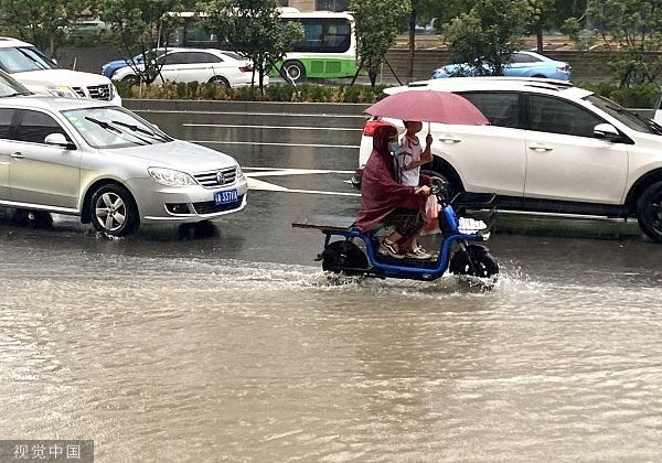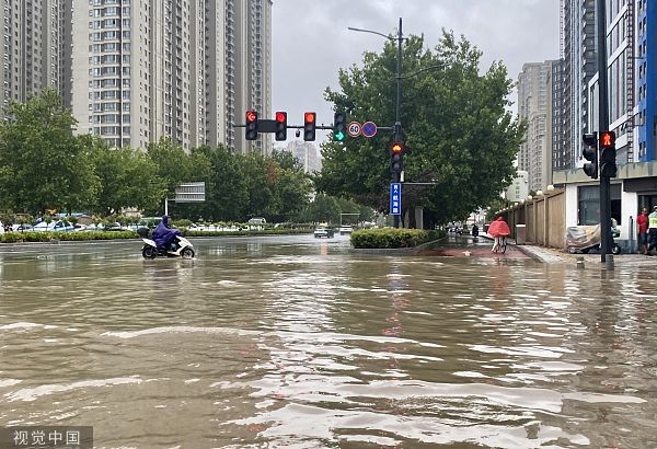 2022年7月22日,郑州,降雨导致市区部分路面积水。