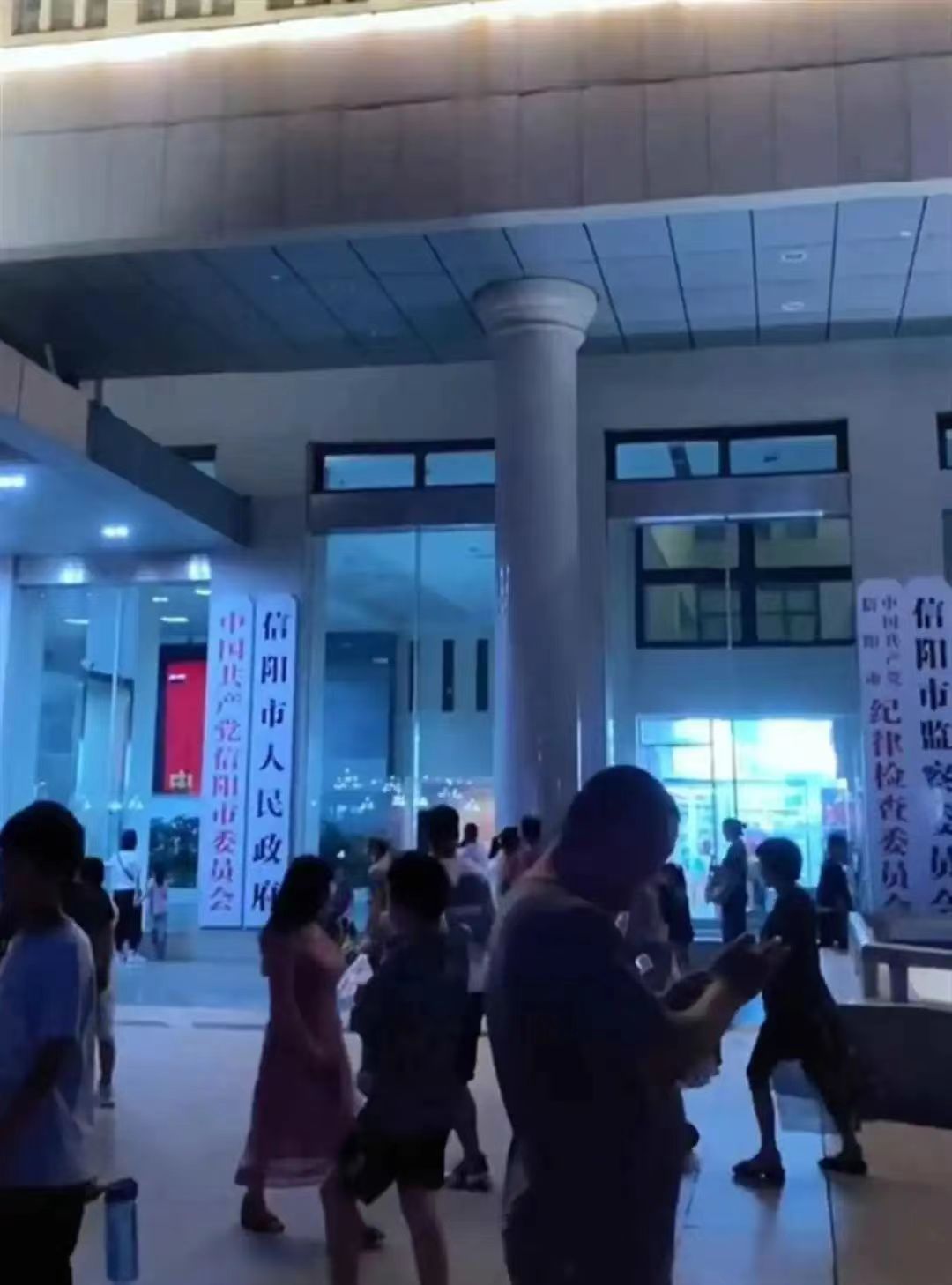 网友提供的图片和视频显示,傍晚的信阳市委、市政府大楼前,有不少市民在这里散步,还有一些市民在“遛娃”,三三两两地聊天,在大楼、花坛、水池旁拍照,一些小学生在玩滑板车,俨然一个公园。