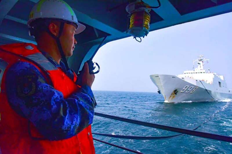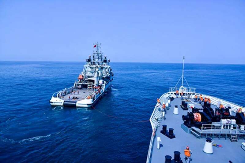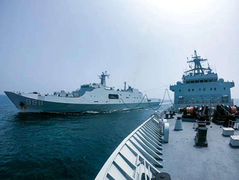 刚刚抵达训练海域,一场综合补给训练随即在茫茫大洋上演。随着指挥员一声令下,受补舰缓慢靠近青海湖舰占领补给阵位,进行海上并靠补给。撇缆系缆、架设管道、吊放物资……整个补给作业流程紧张有序,各类物资快速送达受补舰。