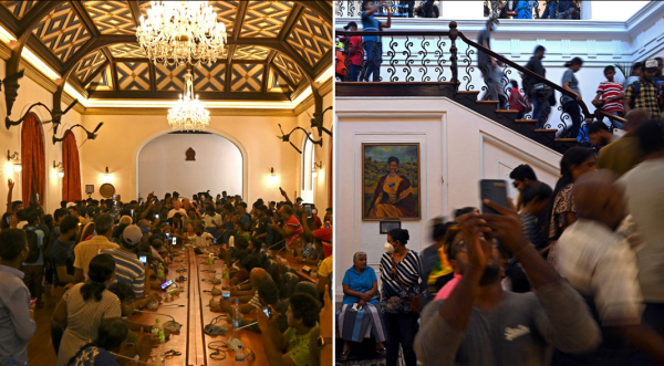 当地时间7月9日,斯里兰卡示威者冲进总统府 图源:社交媒体