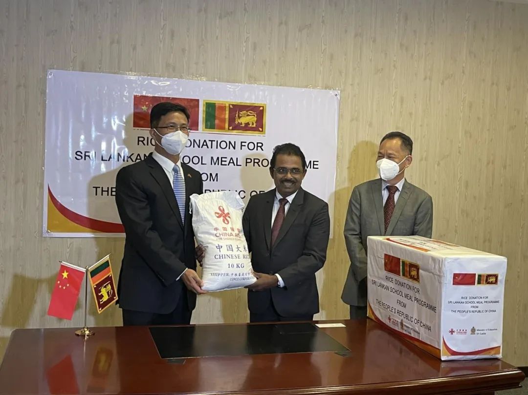7月14日上午,中国驻斯里兰卡使馆与斯教育部共同举行中国对斯紧急人道主义援助第二批粮食(1000吨大米)交接仪式。