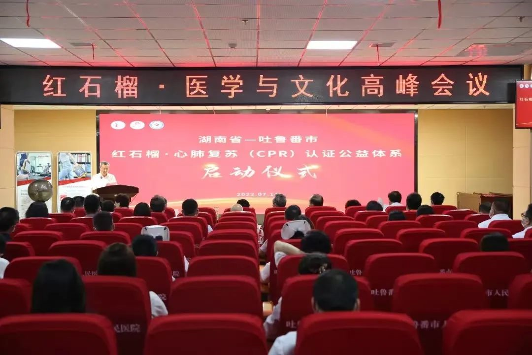 会上,湖南省医学会与吐鲁番市卫生健康委签订了医疗援疆对口帮扶协议,启动“红石榴·吐鲁番CPR认证公益体系”,致力将吐鲁番市打造成为“全国第一座在景点全配置AED和心肺复苏认证救护人员的旅游城市”,并举办了“吐鲁番地区医疗核心制度培训”宣讲、赠字赠书等活动。