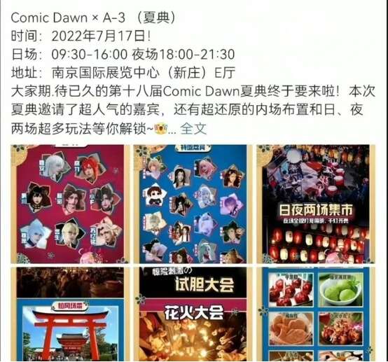 取消“夏日祭”,要从原定7月17日举行的南京A-3×ComicDawn18夏日祭说起,因为特殊的地点和“祭”的特殊含义,该活动引发网友强烈不满,在被广泛抵制后取消。