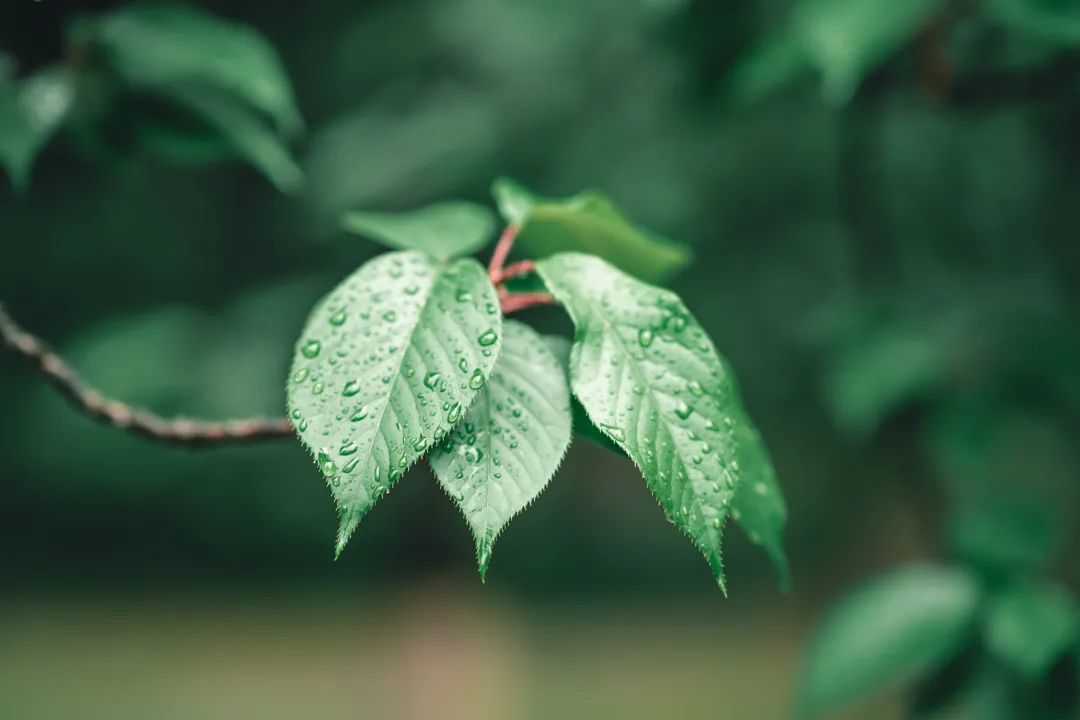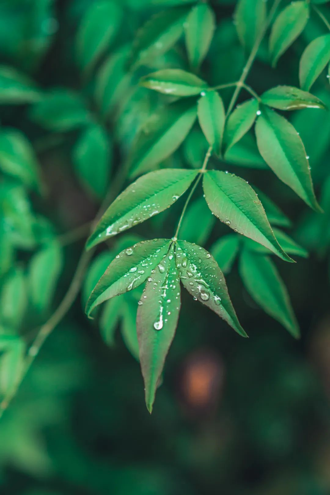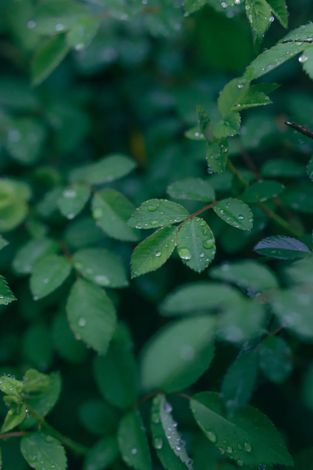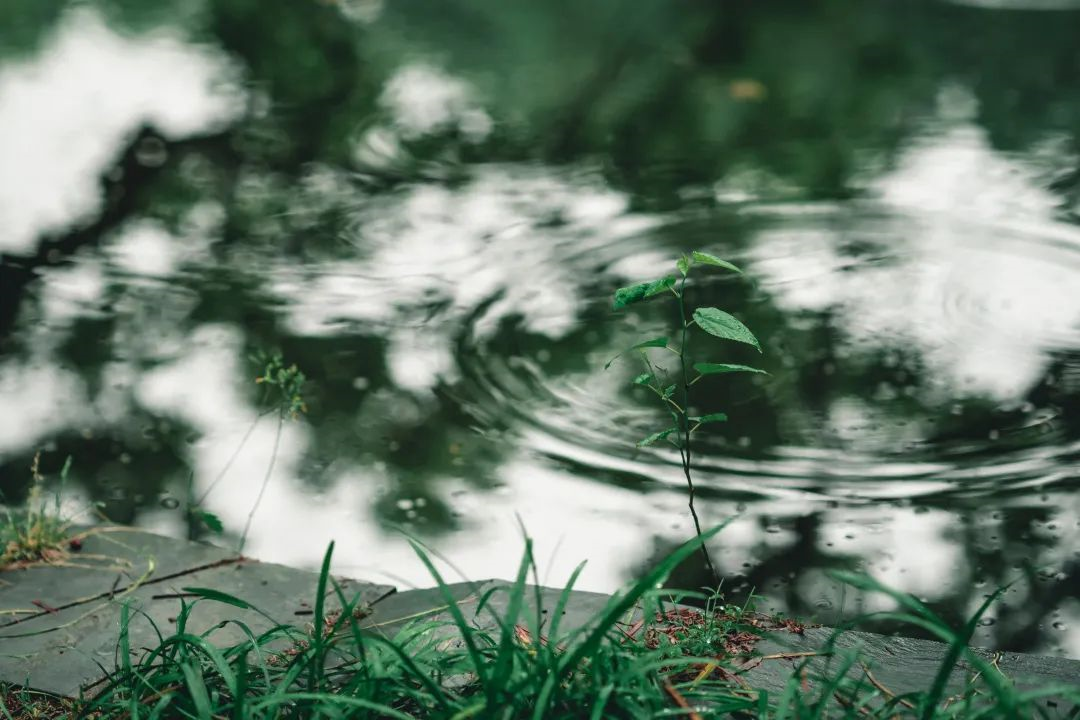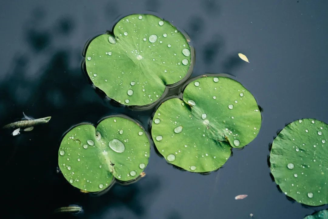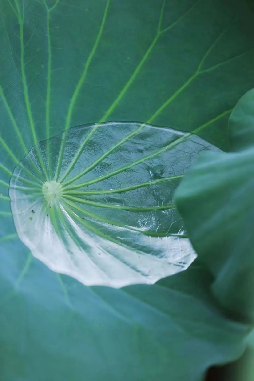 雨水在叶中荡漾,阵雨轻拂,晶露滴落,叶子下脉脉的流水泛起阵阵涟漪。