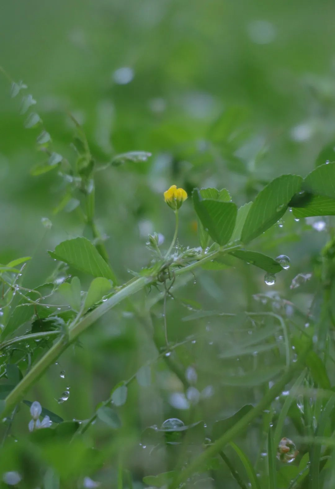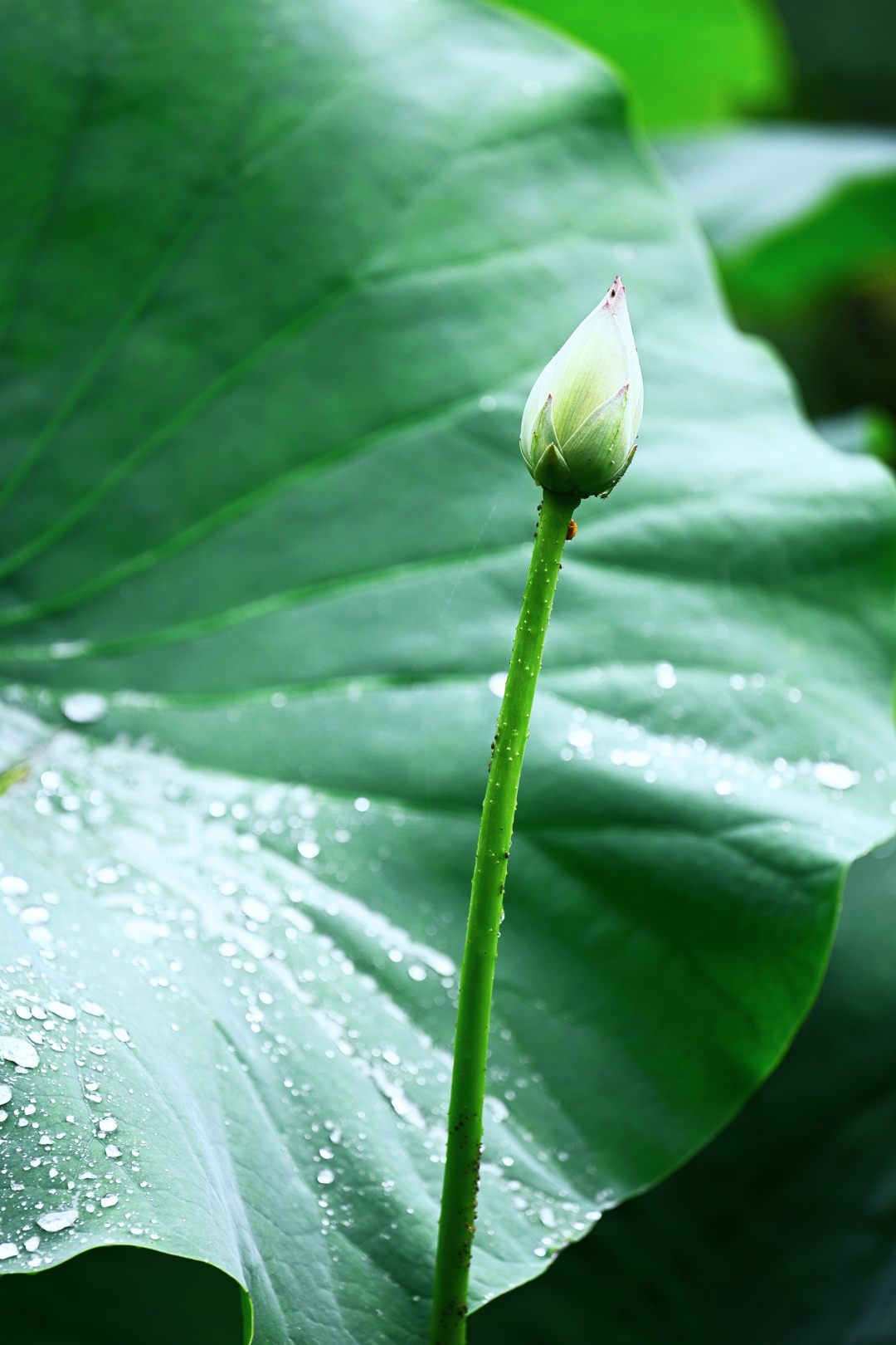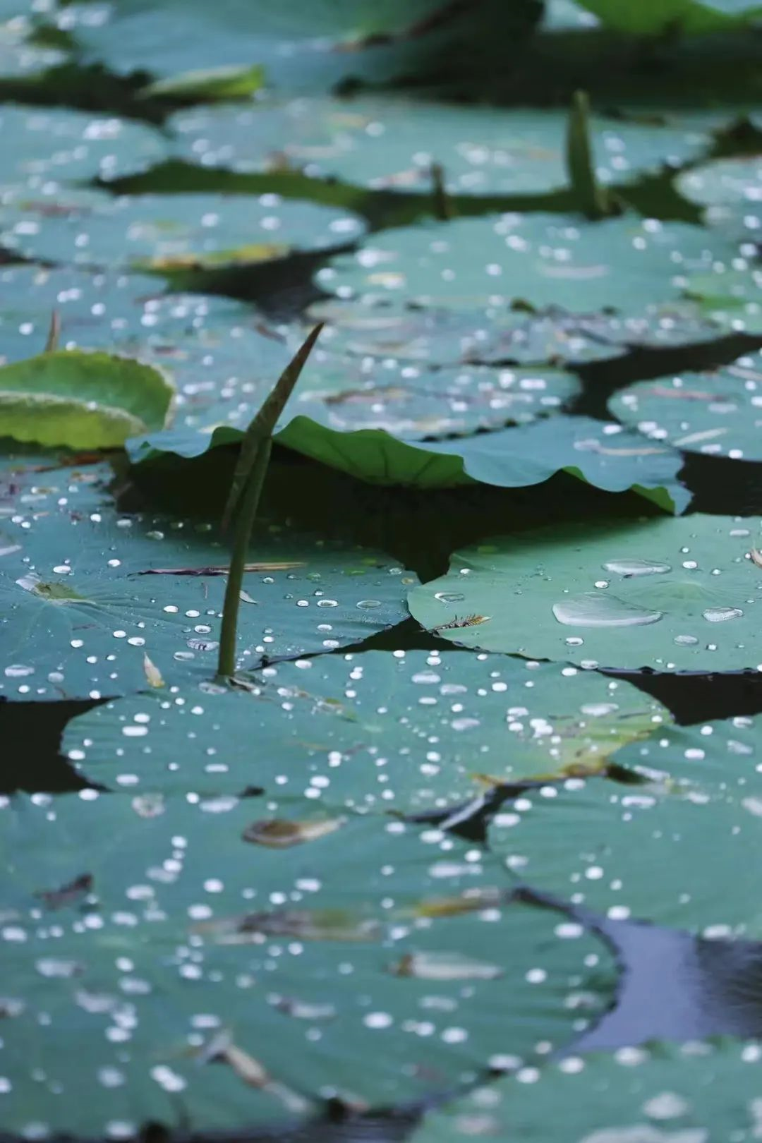 我以为这恰是到了好处——细雨洗去荷塘的浮尘,显出一片蓊蓊郁郁的绿。