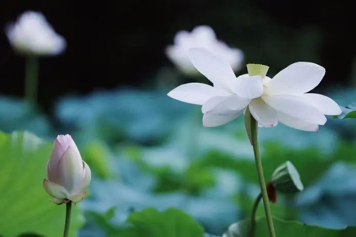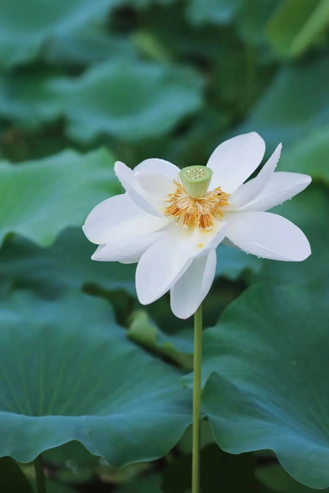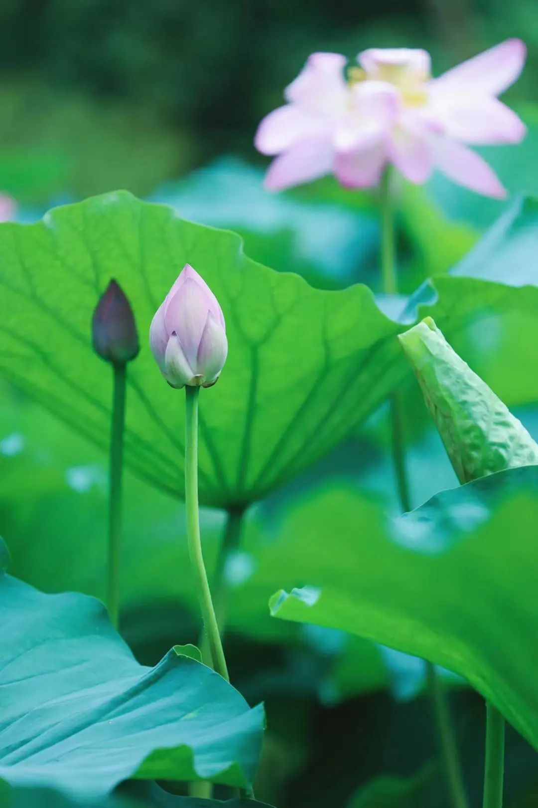 我以为这恰是到了好处——细雨洗去荷塘的浮尘,显出一片蓊蓊郁郁的绿。