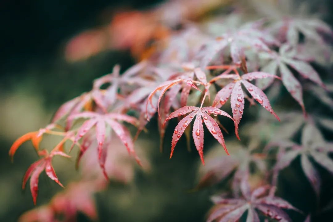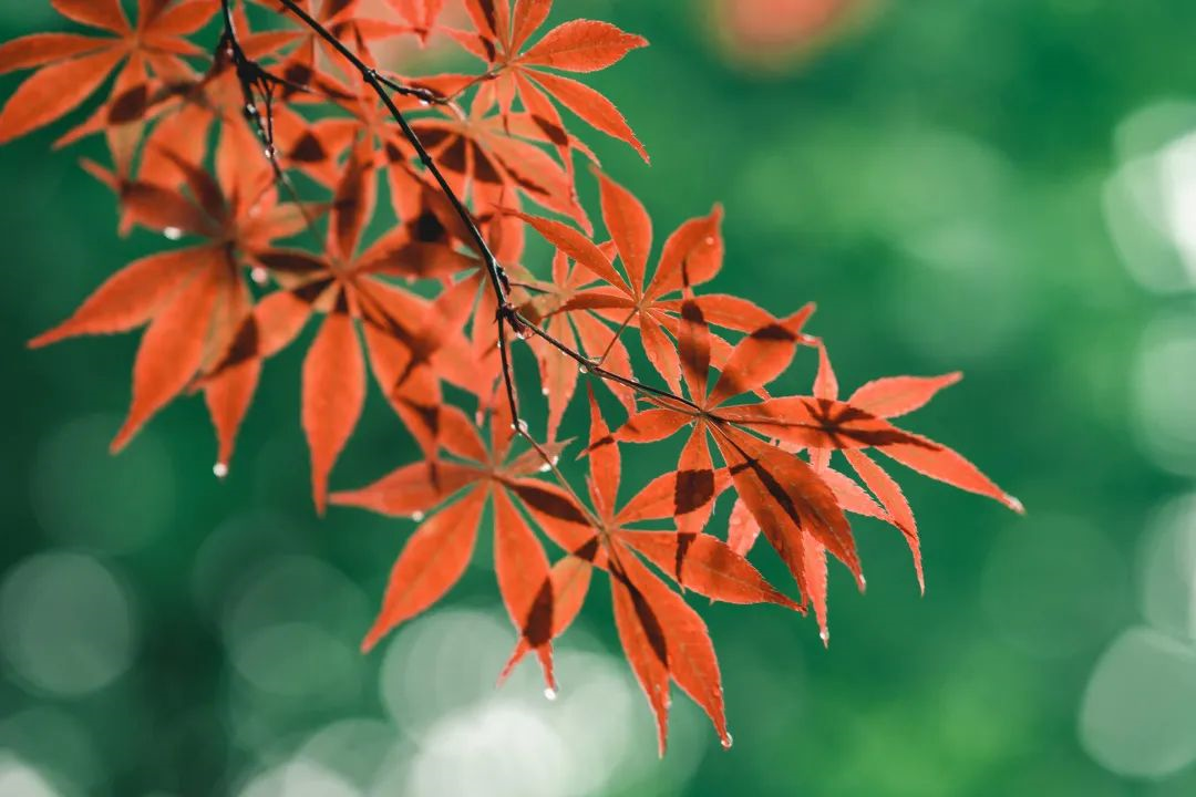 曲曲折折的小路旁,弥望的是层层叠叠的枫叶。叶子颜色在雨水冲刷下更显明亮,像跳跃的火苗。层层的叶子中间,零星地点缀着些雨珠儿,正如一粒粒的明珠,又如碧天里的星星,又如刚出浴的美人。微风过处,送来缕缕清香。