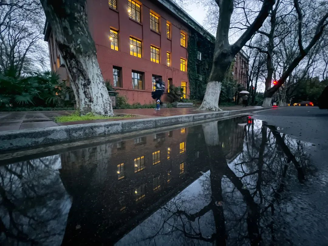 路上只我一个人,撑着一把印有USTC的晴雨两用伞。这一片天地好像是我的;我也像超出了平常的自己,到了另一世界里。我爱热闹,也爱冷静;爱群居,也爱独处。