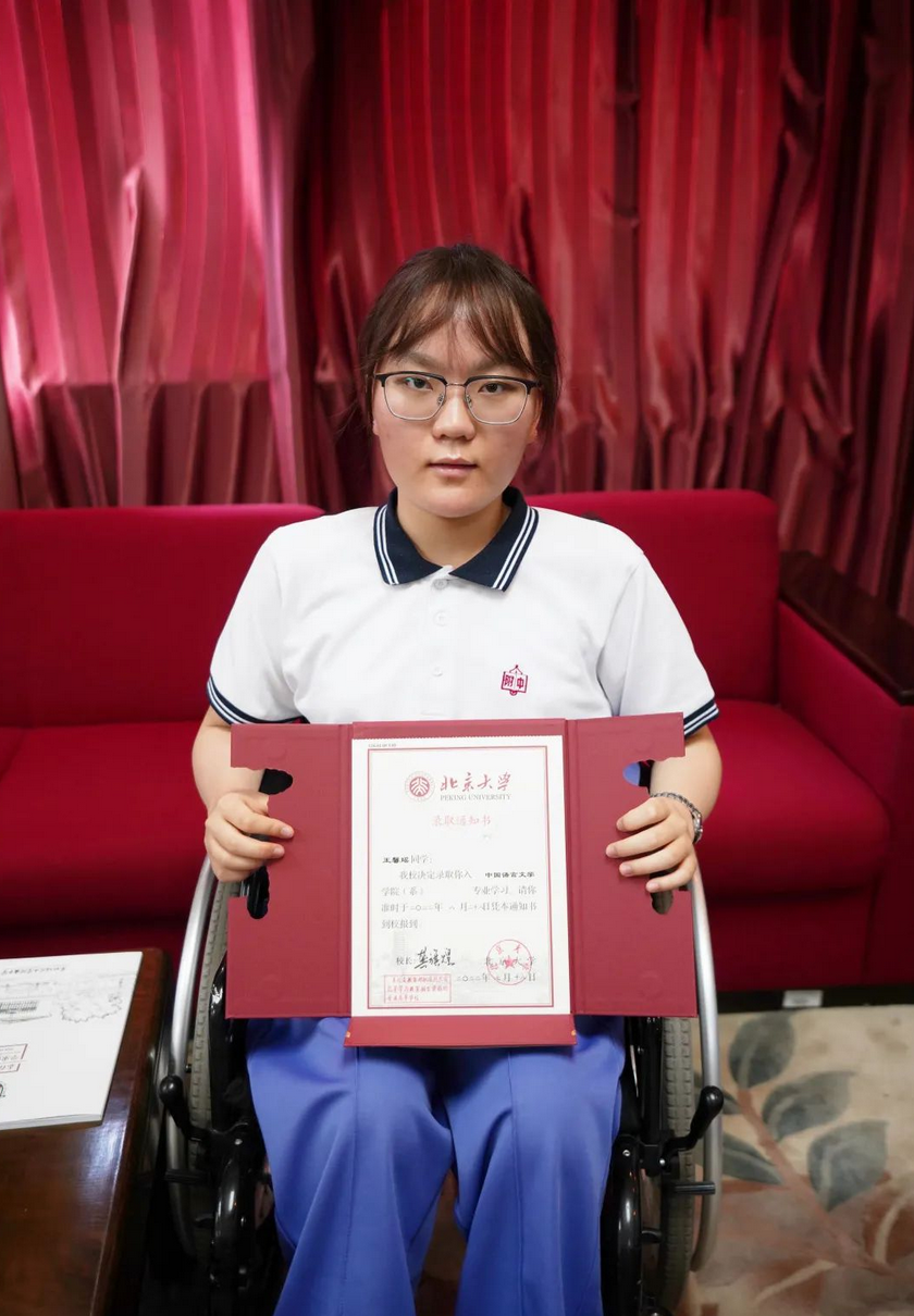 六岁时,王馨瑶因意外受伤,只能以轮椅代步。尽管行动不便,但她依然坚持选择回到校园,追求自己的梦想。