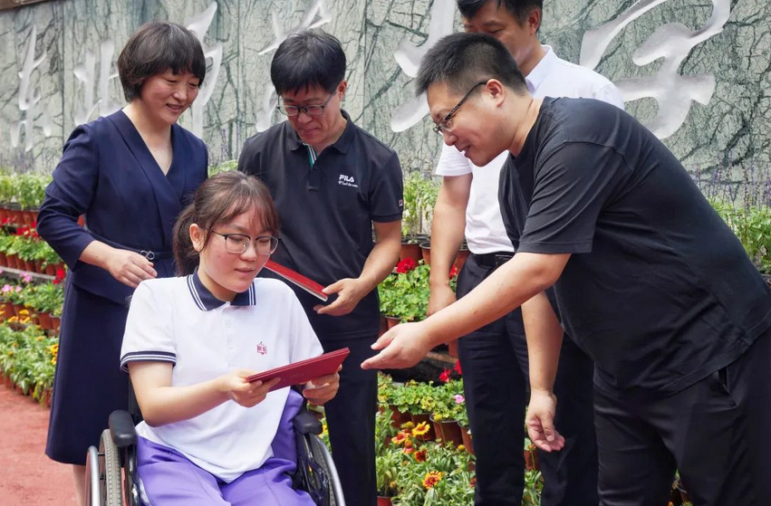 在今年的高考中,王馨瑶被北京大学中文系录取。7月22日,北京大学中国语言文学系副系主任金锐前往东北师大附中,为王馨瑶同学送去北京大学2022年本科生录取通知书。
