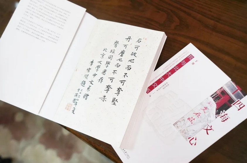 金锐老师送给王馨瑶同学中文系在110周年系庆时编写的一套《四海文心——我与北大中文系》。书中是对38位中文系学人的访谈,回顾北大中文系的发展变迁,重温几代学人的风姿与神采。
