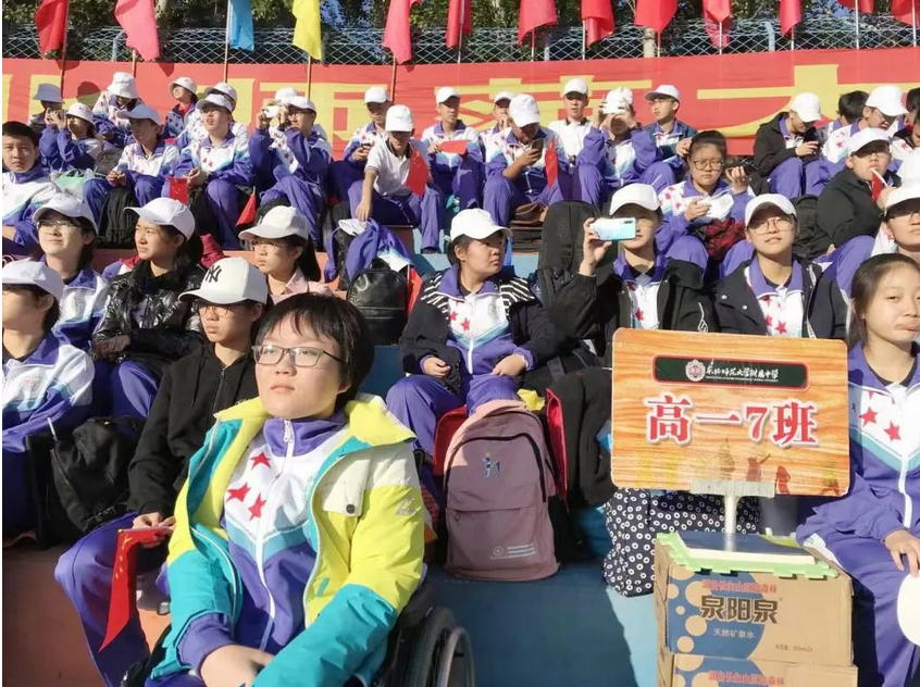 在王馨瑶就读的东北师大附中校园里,有一座教学楼有几个台阶,学校特意为她修了个坡道。为了王馨瑶中午休息方便,学校还在教室旁给王馨瑶安排了一个休息房间。王馨瑶去上选修课或者走班的课时,都有热心的同学们帮忙。
