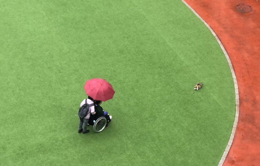 高考前一天,王馨瑶早上6点多就来到她熟识的校园,天空正飘着小雨。妈妈推着王馨瑶来到操场的西北角,那里小猫正在等她。告别了陪伴支持了她三年的东北师大附中,王馨瑶就要来到燕园开启崭新的大学生活。