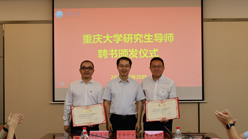 签约仪式上,重庆大学聘请刘敏、王跃青为能源动力专业兼职硕/博士研究生指导教师,李剑为其颁发了聘书。