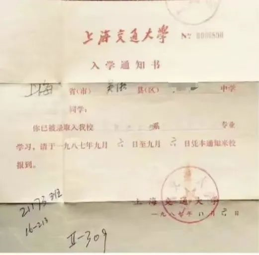让我们穿越时空,回到过去,看一看跨越一个世纪的通知书是什么样子的