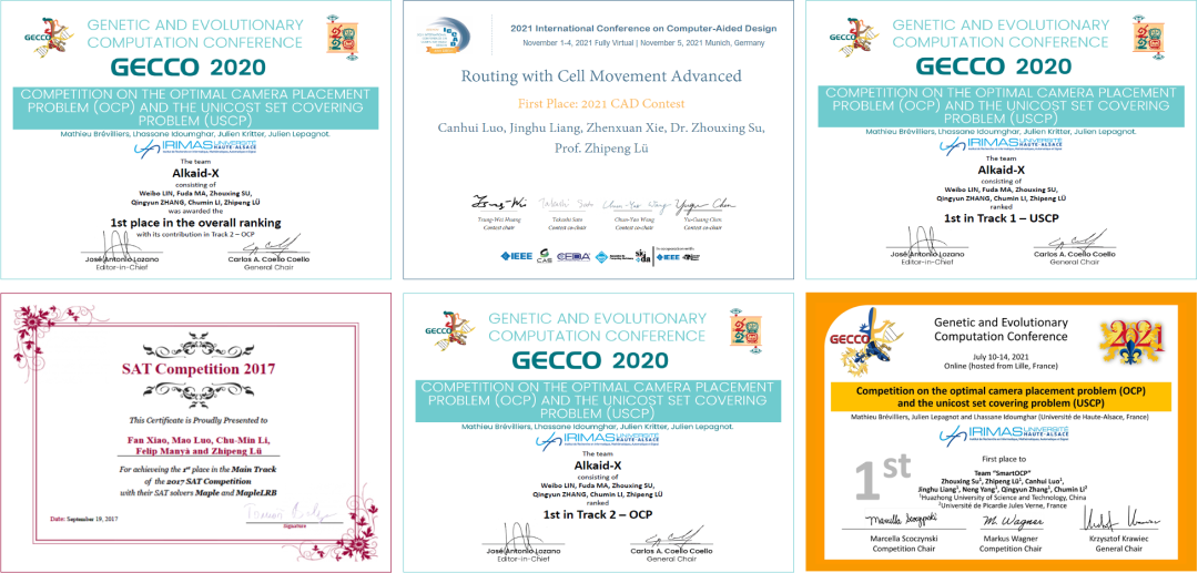 吕志鹏所在实验室自成立至今的40余年来,一直聚焦于复杂问题的求解算法与工业应用研究,曾多次获得国际算法竞赛全球冠军。例如,团队2017年获SAT国际算法竞赛冠军;2020年和2021年连续两年获GECCO国际会议最优相机布局算法竞赛冠军;2021年获国际计算机辅助设计会议(ICCAD 2021)EDA布局布线国际算法竞赛冠军;2022年获DIMACS车辆路径优化国际算法挑战赛两项冠军等。