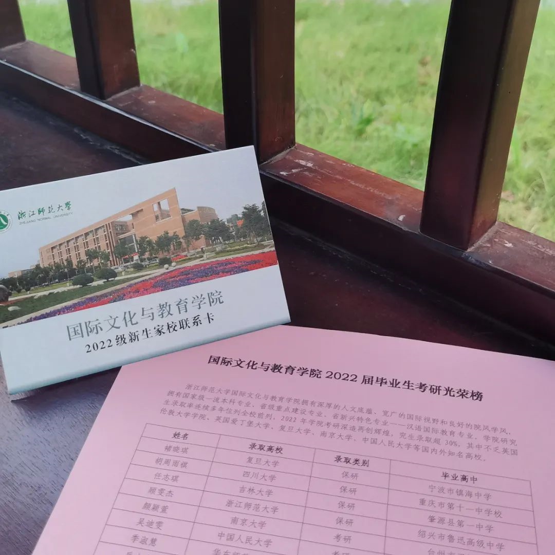 国际文化与教育学院为新生准备了家校联系卡,方便学生、家长与相关部门及教师进行联系。此外,还附有一份毕业生考研光荣榜,意在企盼新生们在未来的学习时光里学有所成、不负韶华。