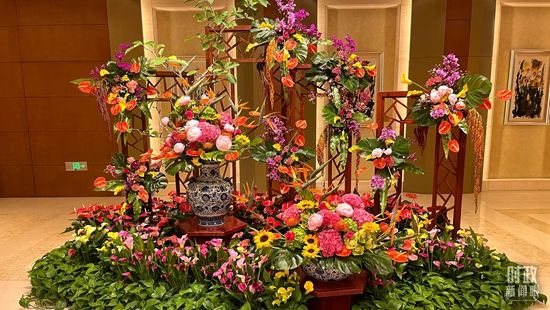 △芳华苑六合厅内,花团锦簇。(总台央视记者郭鸿、鄂介甫拍摄)