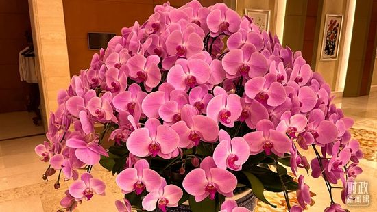 △钓鱼台国宾馆芳华苑内摆放的蝴蝶兰,印尼是蝴蝶兰的重要产地之一。(总台央视记者鄂介甫拍摄)