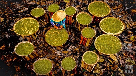 △印尼茂物,工人正在晾晒绿豆。(图/视觉中国)