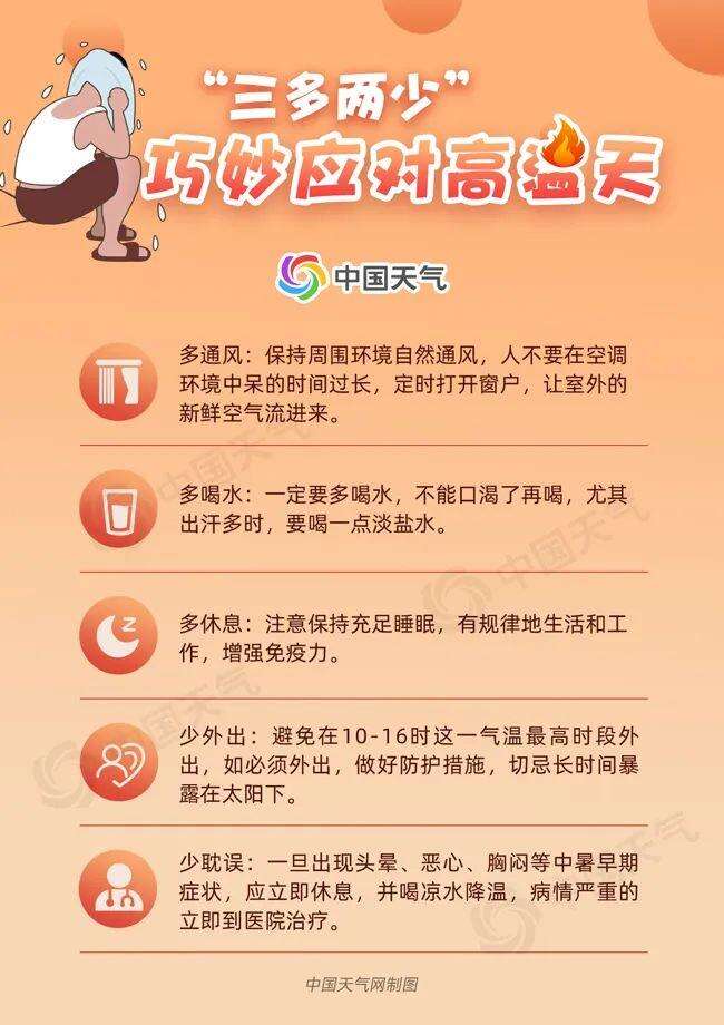 如何在桑拿天防暑降温?这份“三多二少”消暑指南需知晓。一是多喝水,及时补充因大量出汗而流失的电解质;二是多通风,常待在空调房中易出现头晕、鼻塞等症状,需及时开窗,保持室内外空气流通;三是多休息,保持6至8小时的充足睡眠,有条件可增加半小时左右的午休时间,增强免疫力。还要做到二少,一是在午后气温较高时段减少出行,二是如果出现头晕、恶心等中暑症状,少耽误,应立即休息,并喝凉水降温,病情严重的立即到医院治疗。掌握以上消暑指南,助您安全度夏。