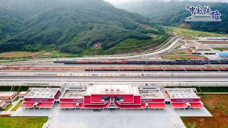 磨憨站设有国内列车和国际列车到发线,是中老铁路货运和客运大型编组站。 依山而建的中老铁路磨憨站,一端连着中国,另一端连着老挝的友谊隧道进口端,距离勐腊县磨憨镇镇中心约1公里。