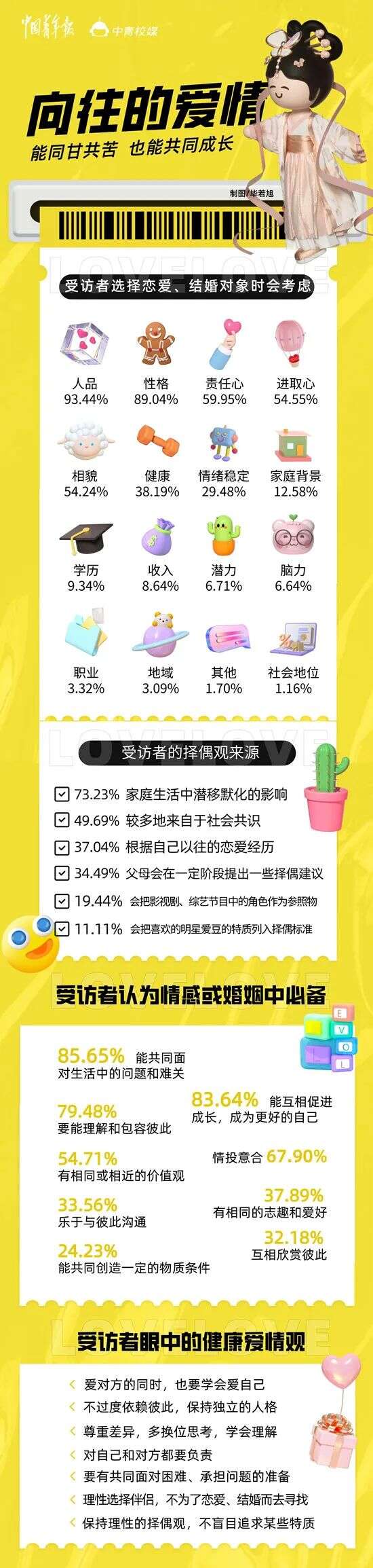 中国矿业大学教授、博士生导师,北京师范大学博士段鑫星介绍:“这一调查结果与现实非常符合,契合了我们生活中讲的恋爱‘始于五观,终于三观’的朴素判断。”