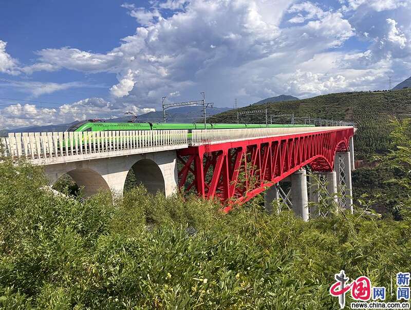 7月27日,一列动车驶过中老铁路元江特大桥。中国网记者 唐佳蕾 摄