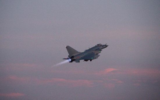 夜幕降临,战机在夕阳中拖着蓝色的尾焰呼啸升空。空地密切沟通、协同配合,展开夜间突防突击训练。